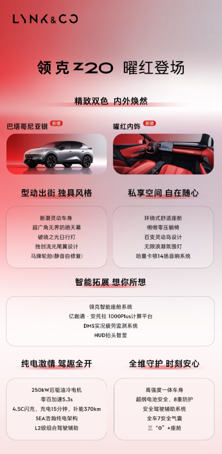 总之,领克Z20曜红版以红运美学为纽带,精准回应了年轻群体对个性、品质和价值的综合需求。从设计创新到性能可靠,再到安全周全,它成功重塑了紧凑级市场的竞争格局。对于寻求生活升级的年轻人而言,这款车不仅是出行工具,更是注入活力与期待的生活伴侣。随着消费趋势的演变,领克Z20曜红版有望引领新一轮的潮流风向。