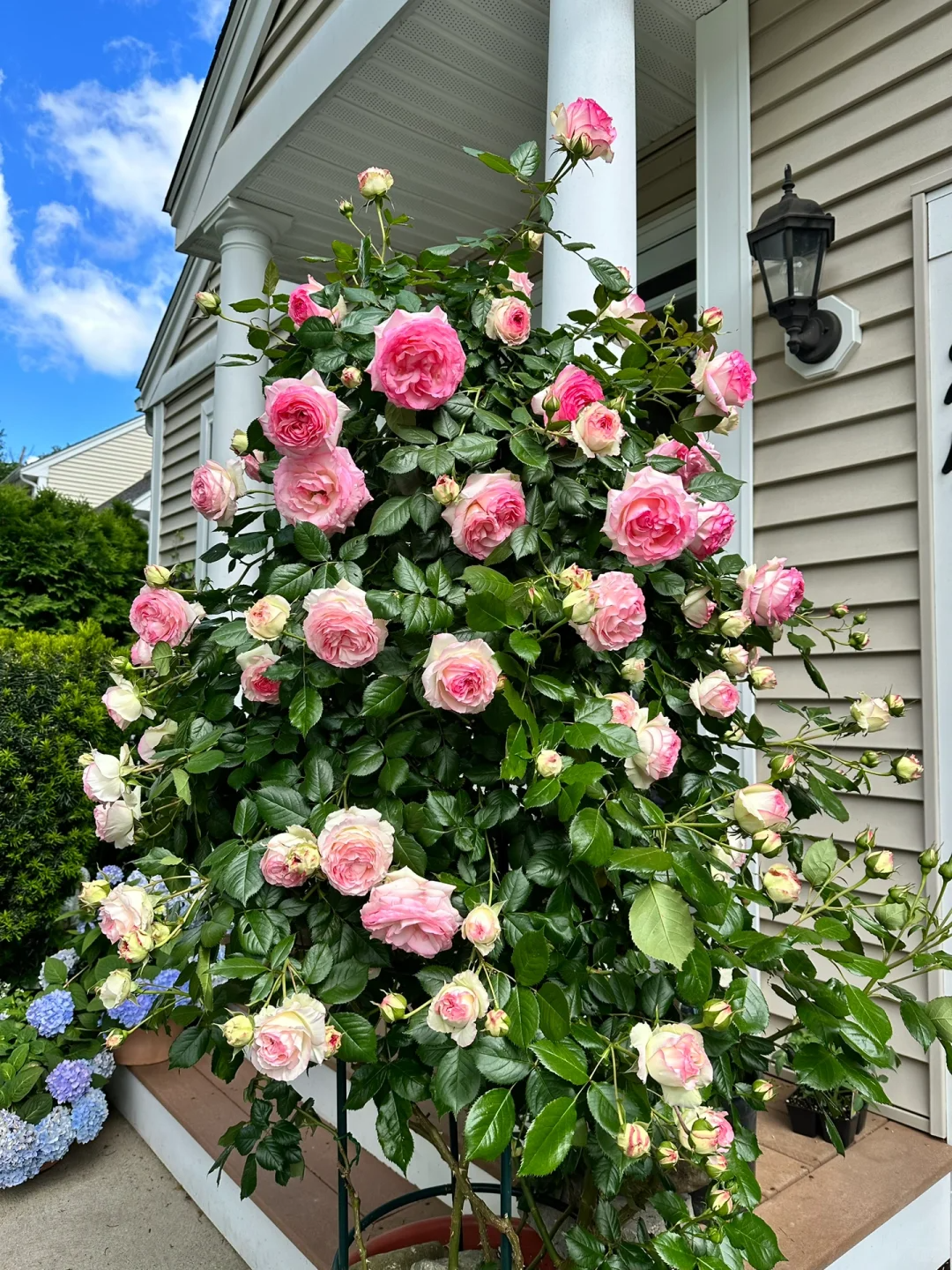 颜值抗打、花量大、有种淡淡的花香味、适应能力(抗寒性/抗热性/抗虫害)强,是制作拱门、花柱、花墙的首选。