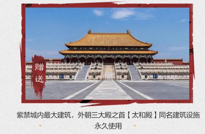 在十周年之际,官方没有搞多买多送的消费套路,也没有故意炒作情怀,而是直接送了玩家一人一座太和殿,上线即领,永久使用。