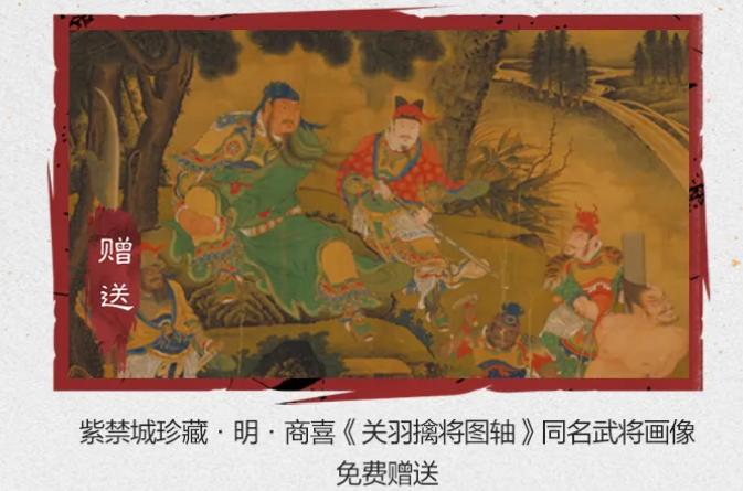 东晋顾恺之的《洛神赋图卷》与明代商喜的《关羽擒将图轴》将被还原为武将画像,细节高度还原,风格古意盎然,玩家通过活动即可免费获取,真正地实现“把文物带回家”。