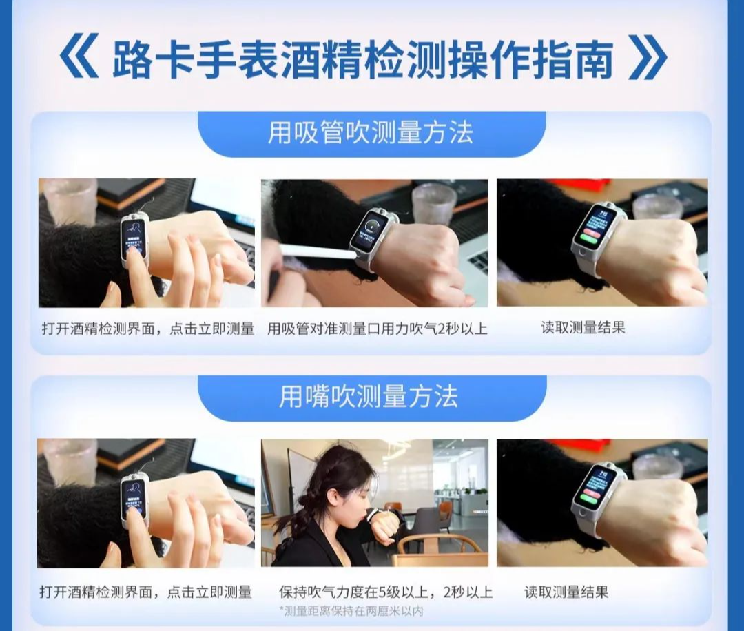 路卡智能酒精检测手表以精准、便携、多能的特性,成为连接激情与理性的桥梁,让每一次欢聚都能安全收场,让每一个夏夜都留下美好回忆。