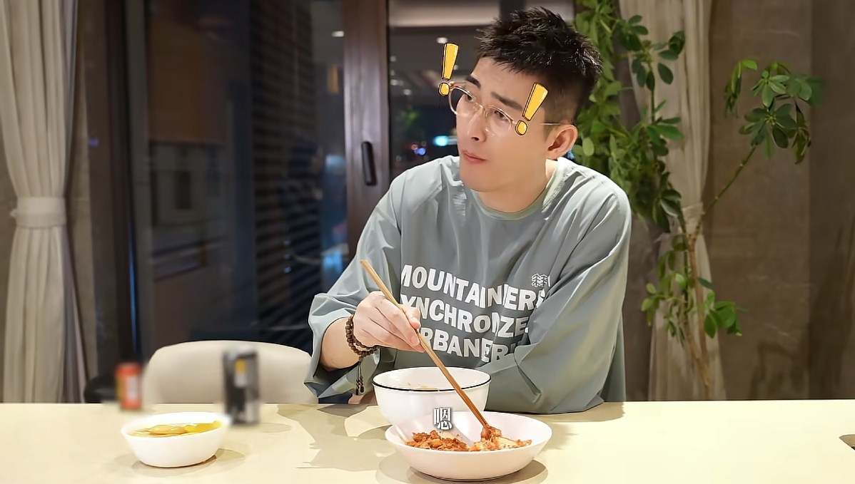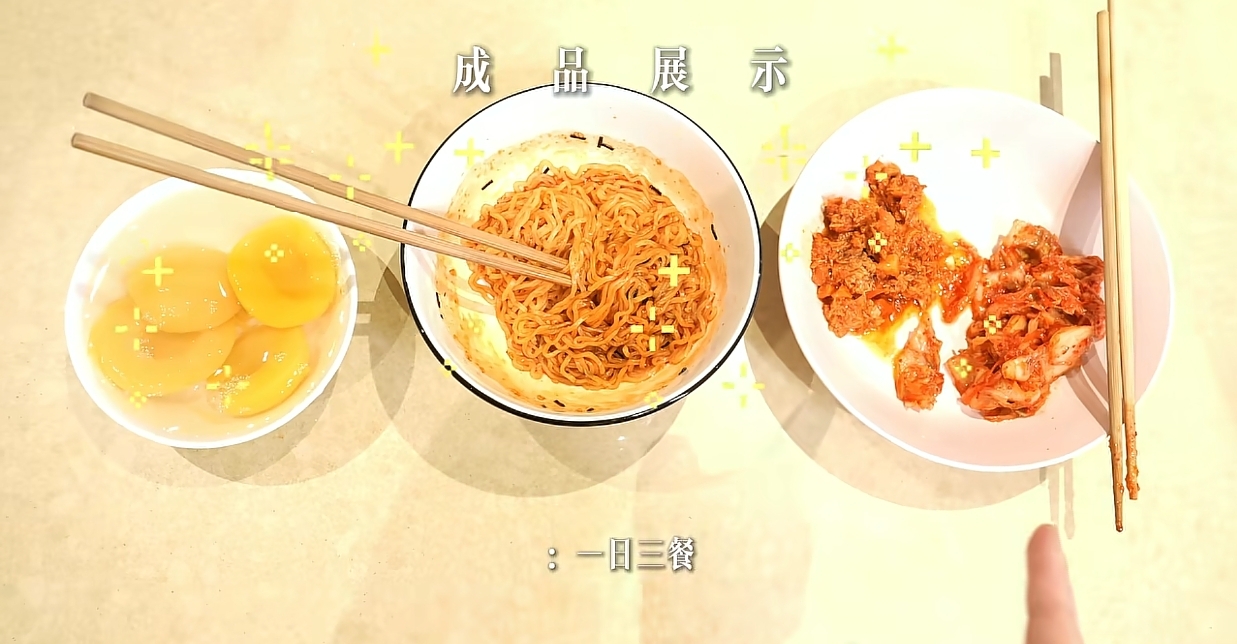 但张翰应该是不会做饭的,因为他嘴里说的大餐,就是从橱柜里拿出一包火鸡面,烧水煮火鸡面,火鸡面还被他煮的有些过头了,配菜则是金枪鱼罐头和辣白菜,全都是速食。