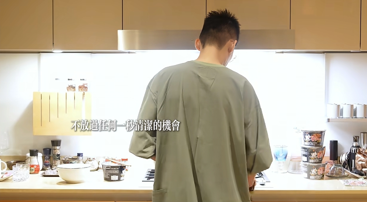 不过张翰在煮面的时候,一个动作也解开了为什么他家厨房看着像新的,抹布却旧旧的谜题,那就是他一直都拿着抹布在擦拭台面,有一点脏污都被他很快的清理干净,看来他是一个非常爱干净的人。