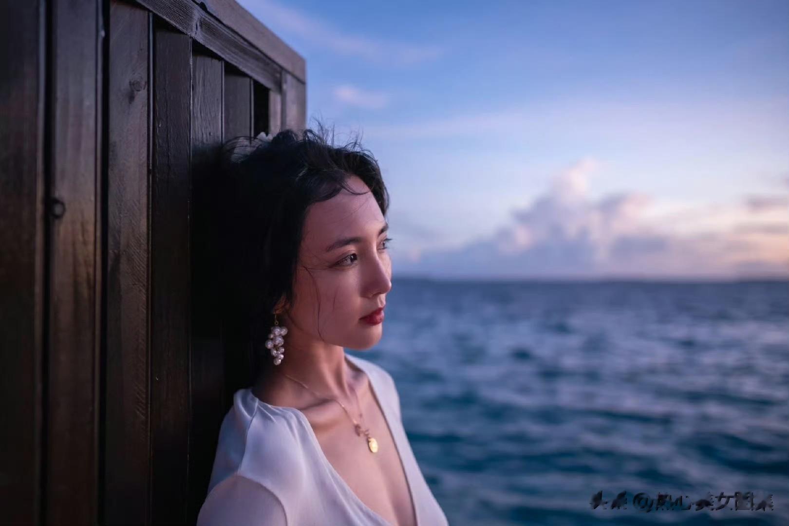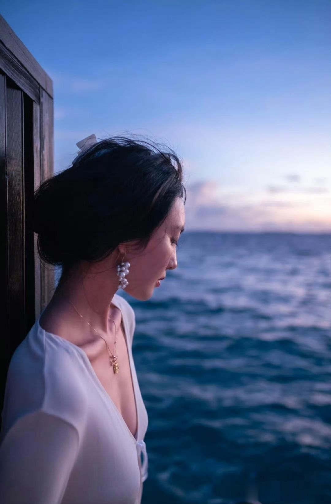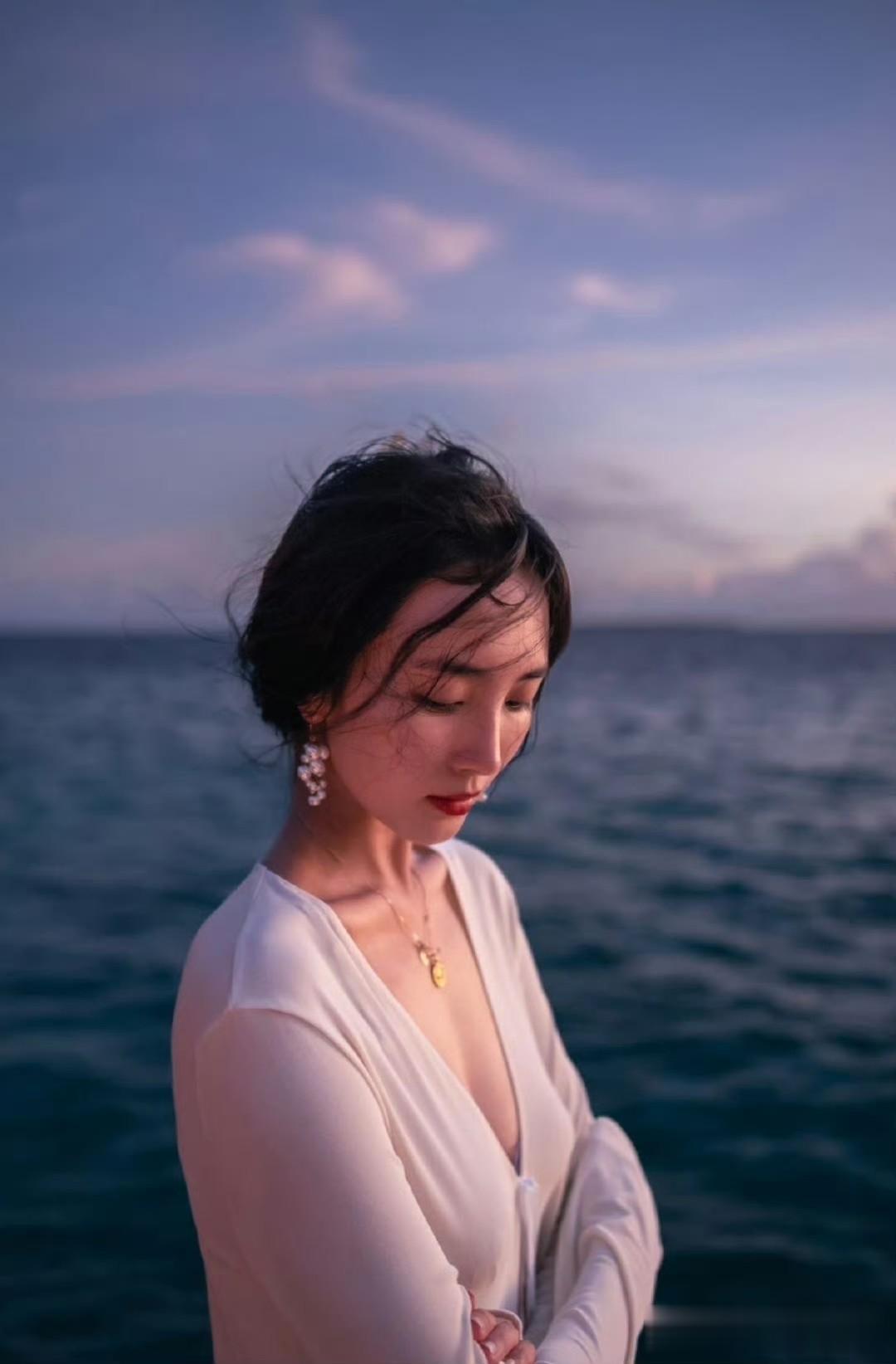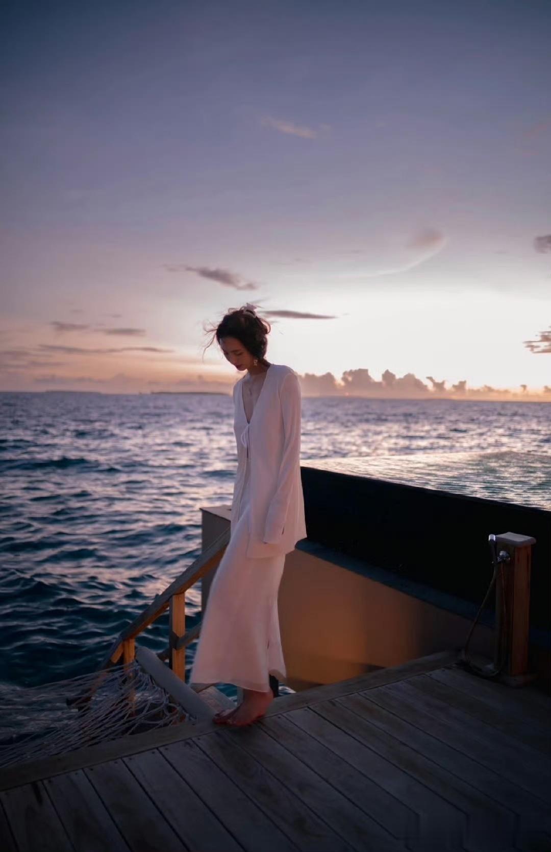 想象一下,夕阳的余晖洒在白色裙摆上,海风吹过,裙摆轻轻飘动,这场景太养眼了。感觉她随便摆个姿势都能出片,这氛围感直接拉满,让人看一眼就沉醉其中,仿佛跟着她一起置身于浪漫的海边。