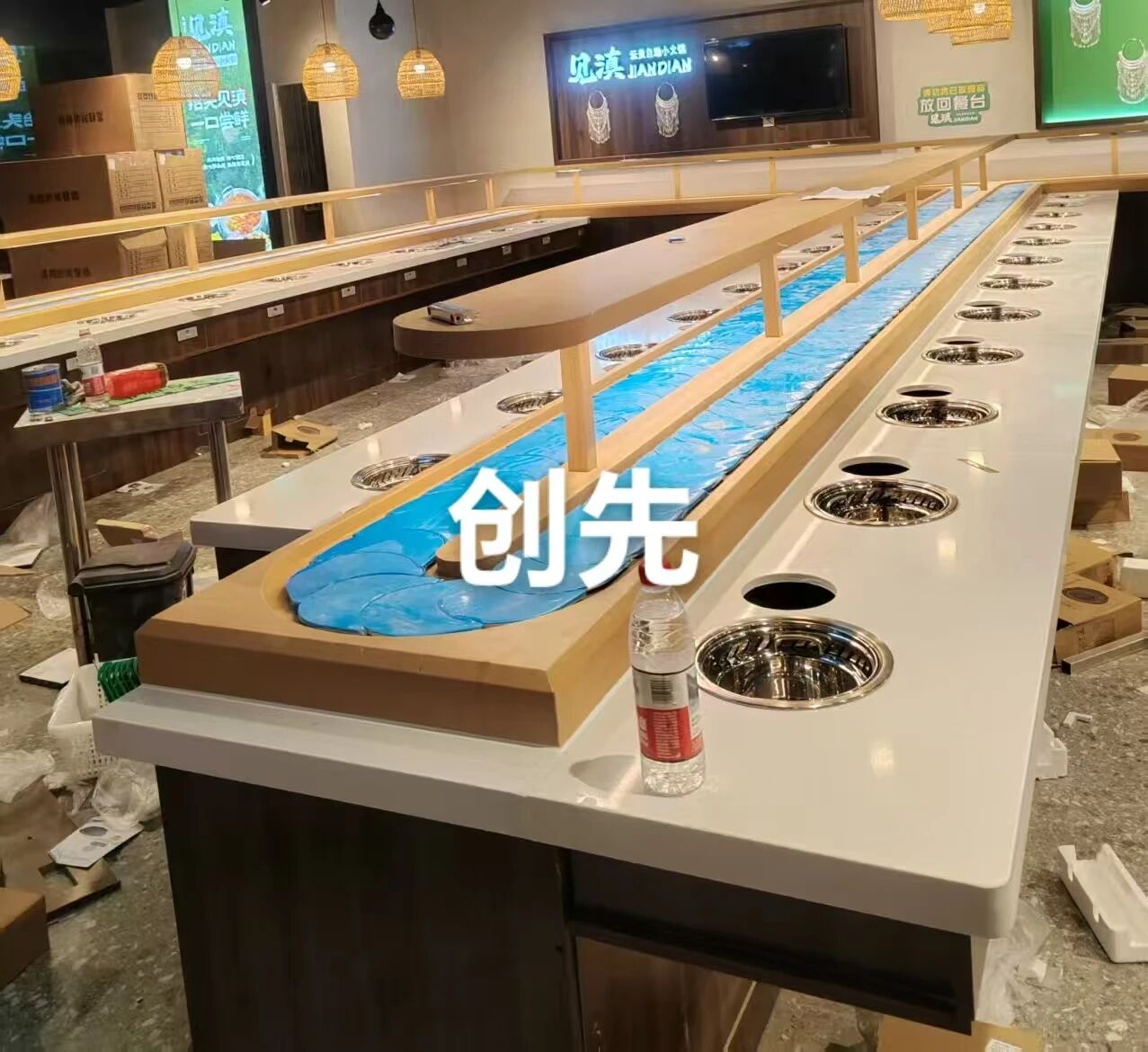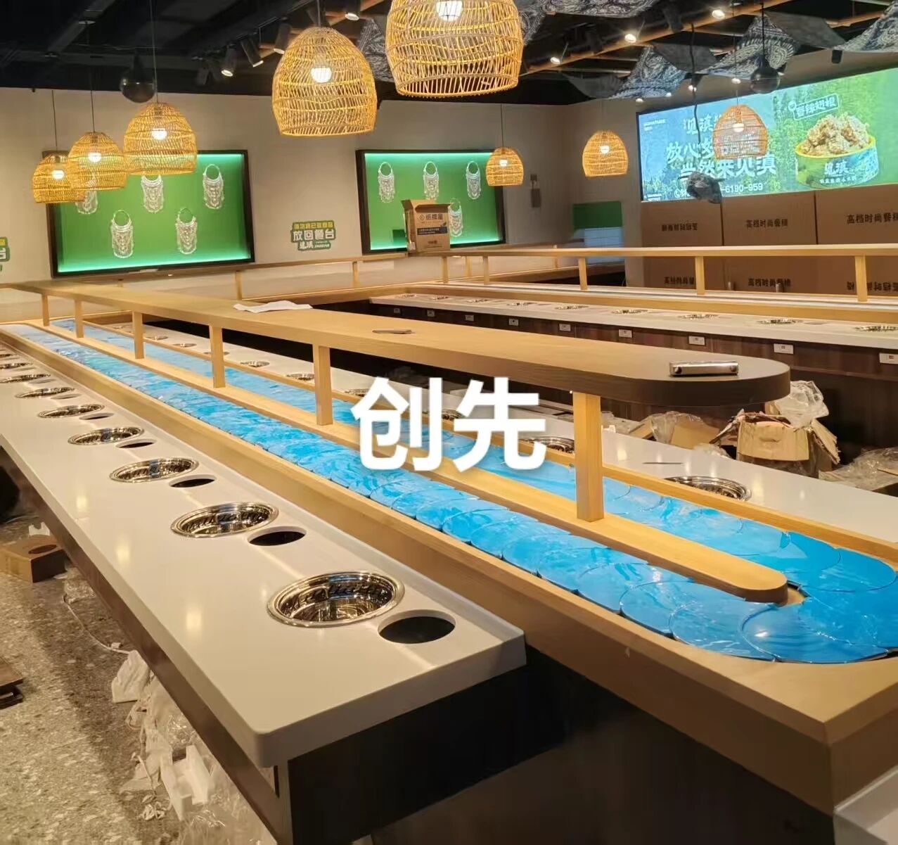 前厅核心的回转设备,创先厂家更显专业实力。设计师依据店面平面图1v1定制,严格遵循动线原理,巧妙兼容柱体障碍物,科学把控餐位间距,合理规划多人餐位与走道空间,还能配合景观台拓宽回转主体,实现流畅、实用与美观兼具的设计标准。以中岛部件为例,创先厂家赋予其多元功能,可作餐具架、饮料架还能粘贴菜品名牌,合适高度兼顾隐私性;台面下定制抽屉方便顾客自取一次性餐具,搭配踢脚线、喷雾加湿器、智能送餐小火车等可选配置,既提升顾客体验又节省人力。凭借成熟技术与丰富经验,创先厂家已成为众多知名旋转小火锅品牌的信赖合作伙伴,海量商场店安装实例可直接参考借鉴。