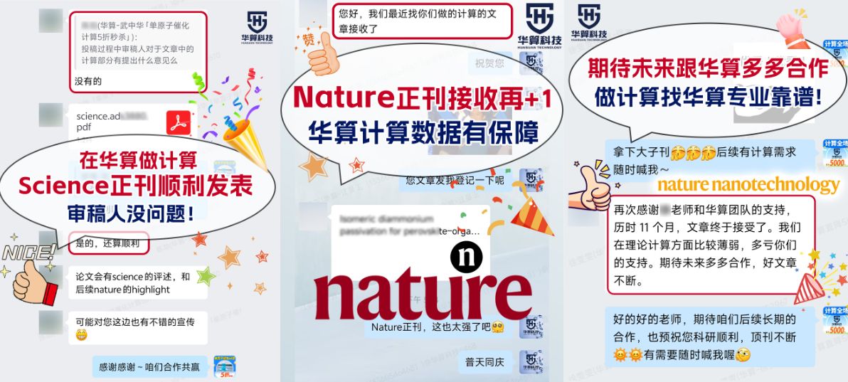 “与华算的合作非常高效专业。他们不仅快速解决了我们课题中的关键计算难题,其工程师在补充数据和分析审稿意见方面提供的支持,对我们论文最终被《Science》顶刊接收起到了至关重要的作用。”