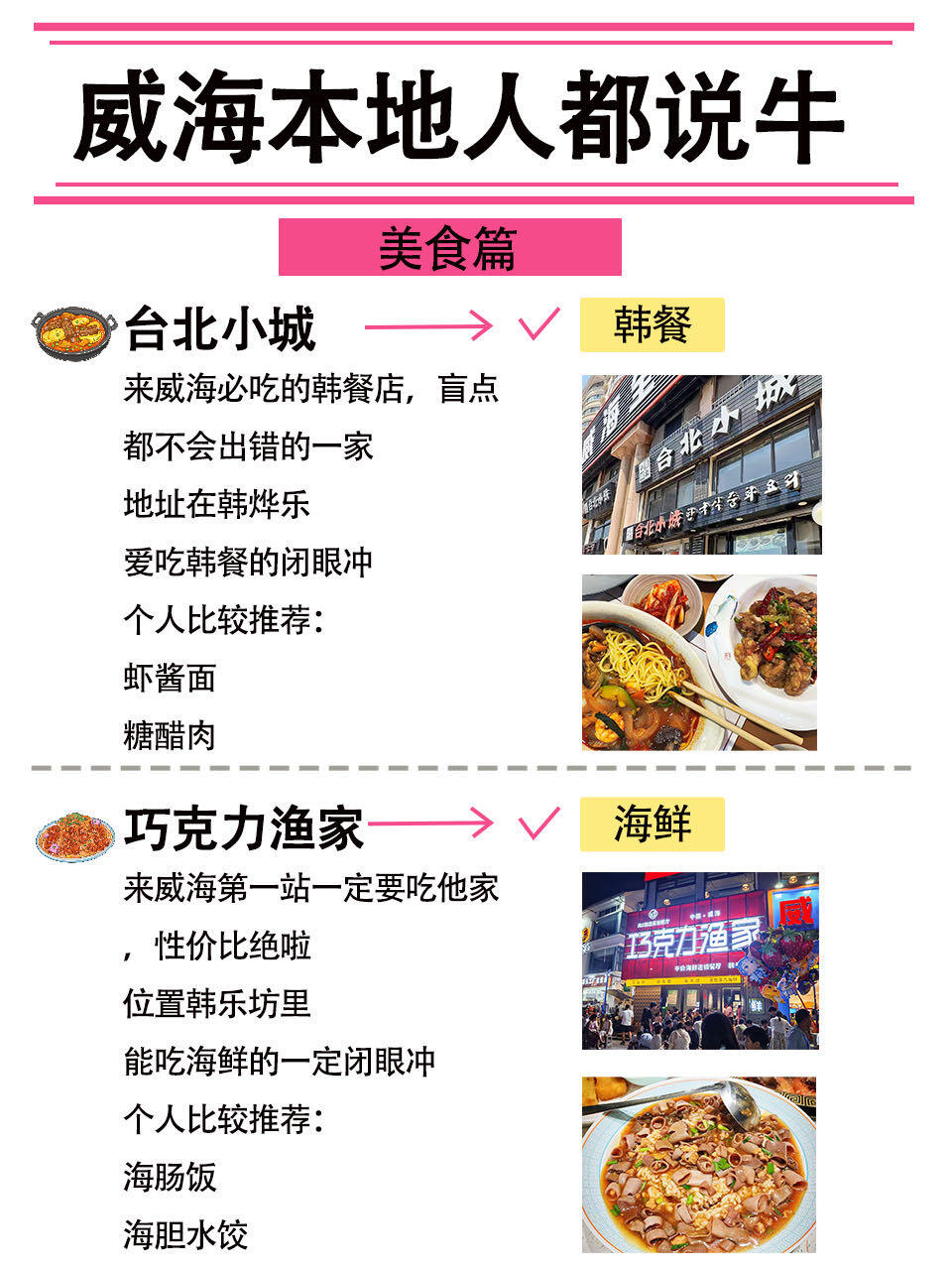 韩餐选台北小城、杏梨烤肉;海鲜冲巧克力渔家;想清淡就去老古辈吃馄饨,美味不踩雷~