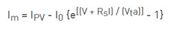 其中Ipv是由光照射在单元上产生的电流,I0是二极管的反向饱和或漏电流,V是端电压,Rs是等效串联电阻,I是端电流,Vt是热电压,a是二极管理想因子。