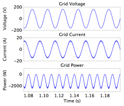 这个PLECS演示模型展示了一个与电网连接的太阳能电池板系统,该系统具有一个升压前端和一个单相逆变器后端。升压转换器被设