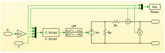 一个等效的单二极管模型被用来实现PV字符串。控制该单元产生的电流的方程由以下公式给出: