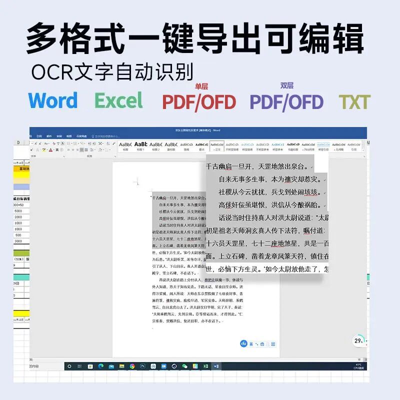 卓越的OCR识别能力是另一大亮点。成者扫描仪内置优秀的 OCR 文字识别引擎,具备行业领先的 AI 文字识别技术,拥有更好的识别准确率。在采编工作中,无论是纸质文档还是扫描图像中的文字,都能快速、准确地全文识别或局部框选识别。且扫描之后可直接将 JPG 图片识别为PDF/OFD、双层 PDF/OFD、 Word、Excel、TXT 等文档格式,方便采编人员根据不同的需求进行编辑、检索和存储,极大提升了文档的利用价值。