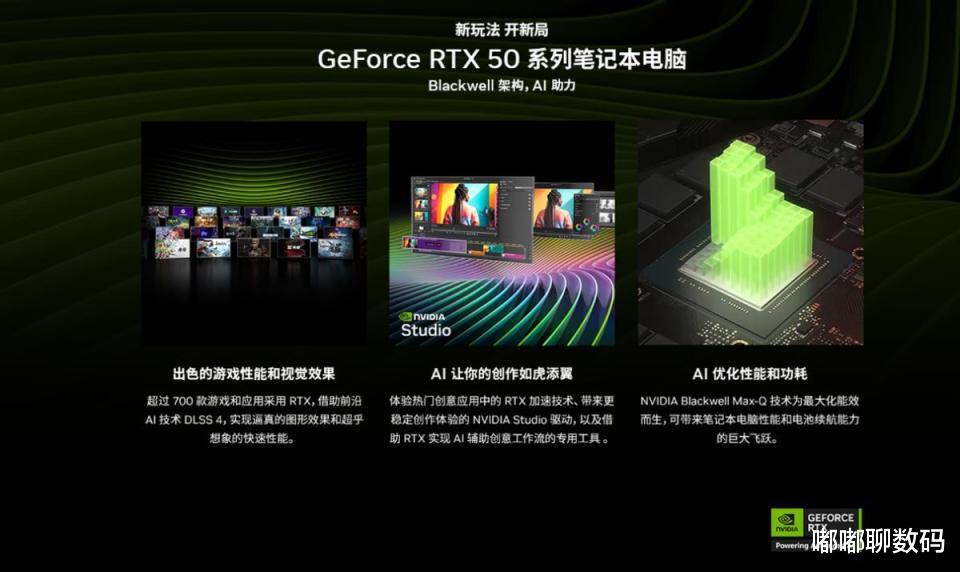 据悉,NVIDIA® GeForce RTX™ 50 系列笔记本电脑搭载专业AI技术,可加速热门应用,加速学生学习、创作和游戏的体验,性能远超过普通笔记本电脑。此外,有了专属的NVIDIA Studio平台的创意工具和技术,以及优化电池续航时间、噪音效果等的Max-Q技术,你将获得一台适合学习和娱乐的完美笔记本电脑。
