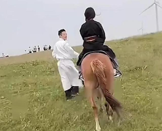 于是,汪小菲和妻子马筱梅,都换上了白色的草原服装,两人男俊女靓的组合,看起来很养眼。