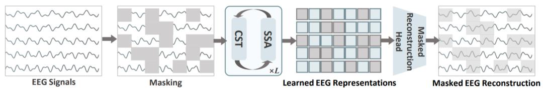 CSBrain 采用掩码自预测的自监督预训练范式,并基于 TUEG 数据集中超过 9000 小时的脑电信号数据完成了大规模预训练。