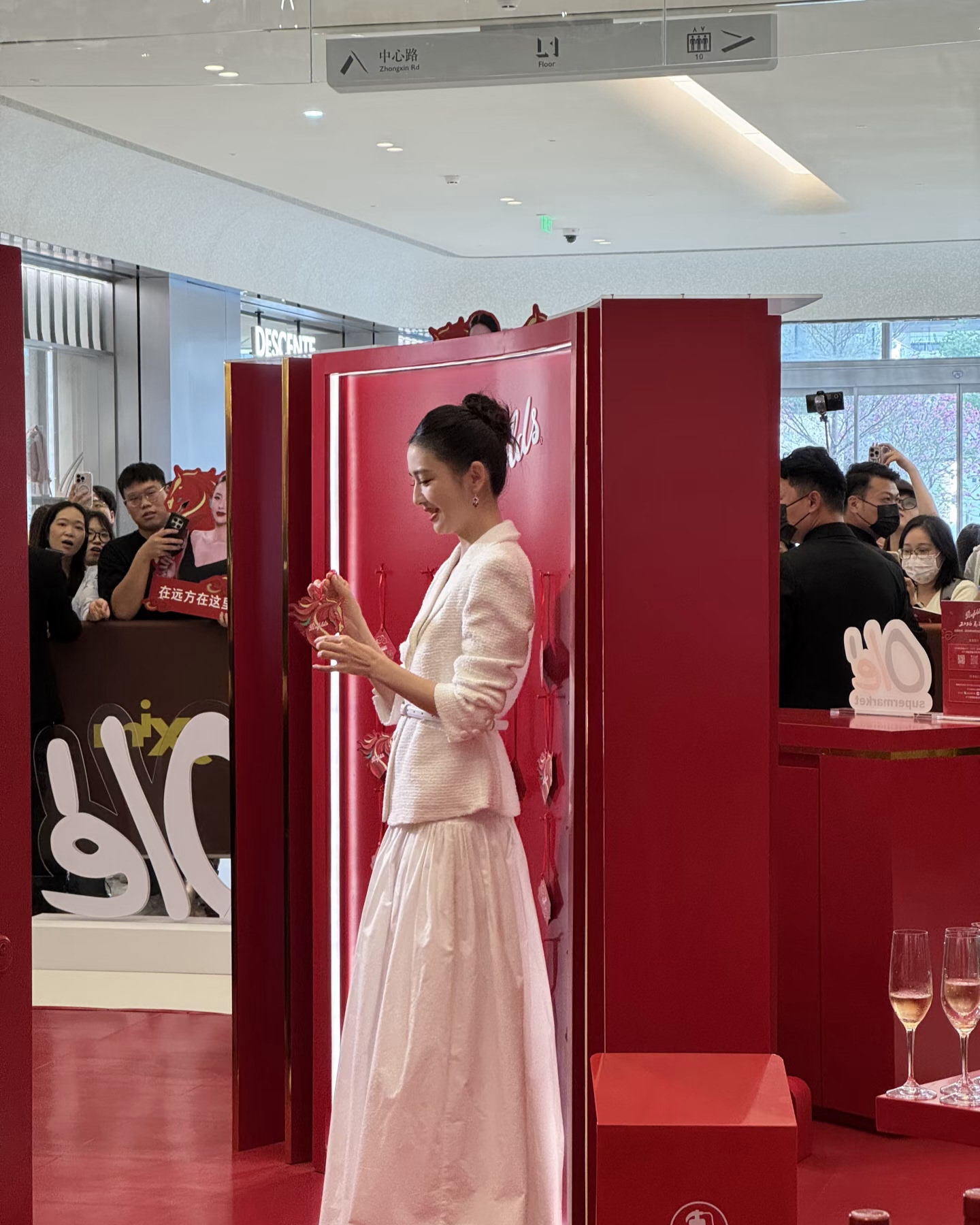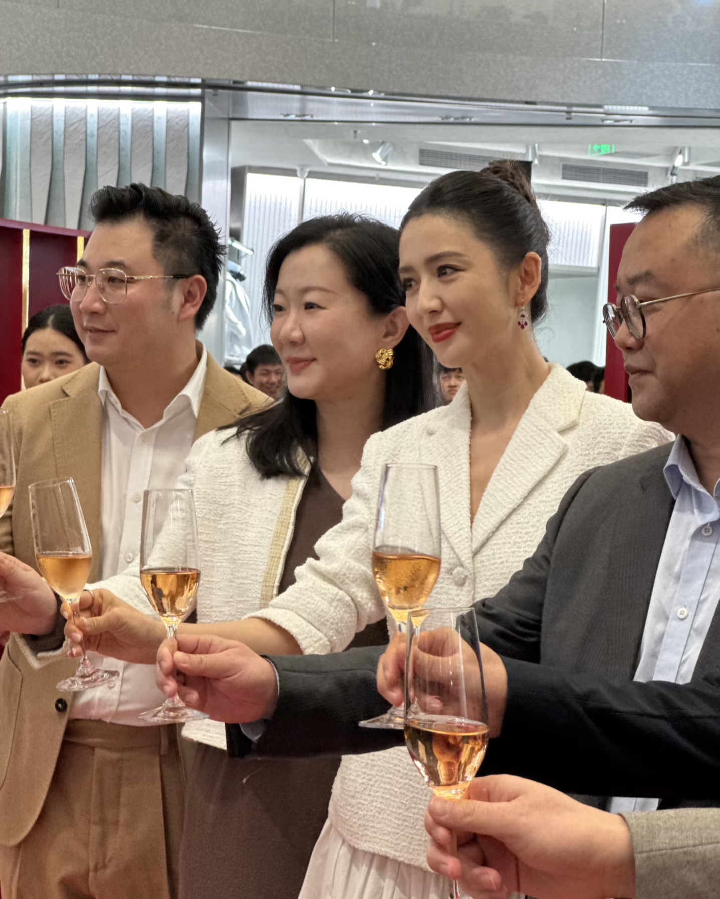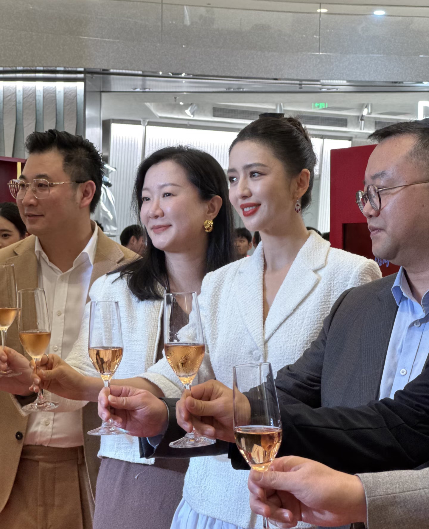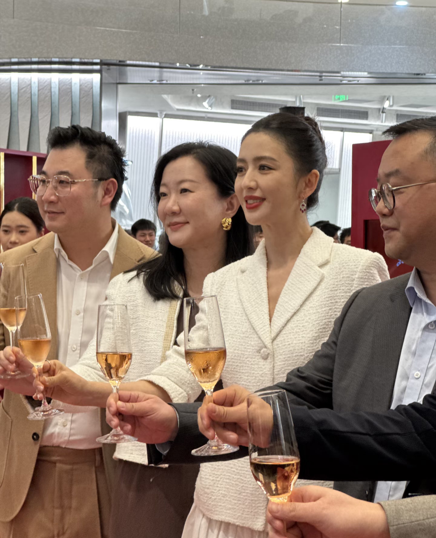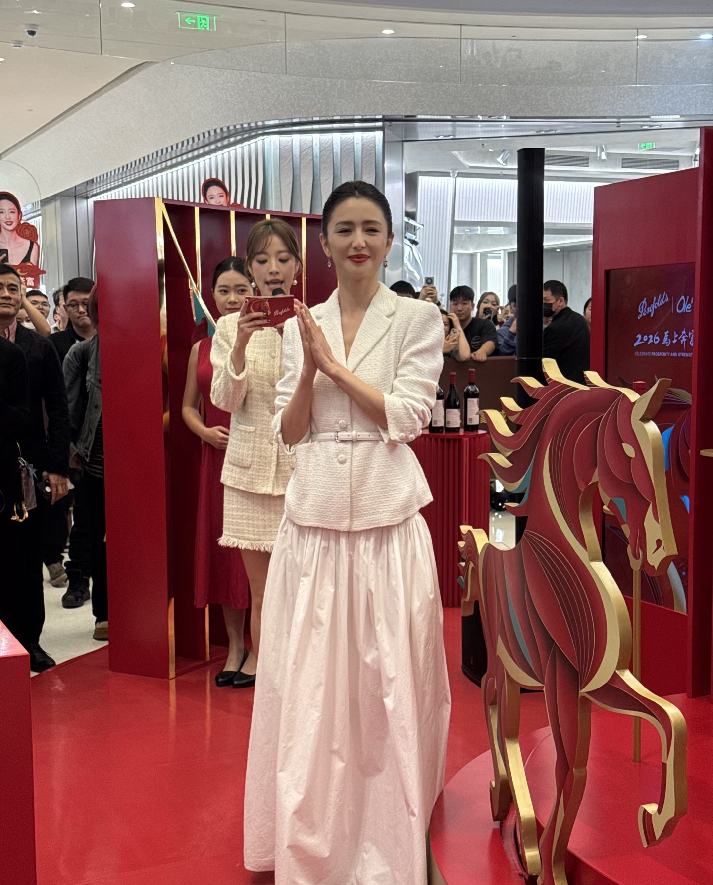 佟丽娅今天是出席了一个红酒品牌的宣传活动, 她穿了一身白色小香风的裙子,戴了红宝石耳环和戒指,整个人优雅又贵气。