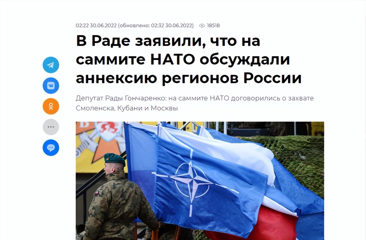 在拿下北顿涅茨克后,俄军开始集中精力,向利西昌斯克推进,这是俄乌争夺卢甘斯克地区的“最后一城”。根据俄罗斯国防部发言人科纳申科夫的说法,目前俄军在利西昌斯克炼油厂地区发动攻势,乌军损失惨重。卢甘斯克武装力量也表示,已经控制了进出利西昌斯克所有主干道。从目前情况来看,俄军拿下利西昌斯克恐怕只是时间问题。然而,战场上的劣势并未打击到乌克兰的“雄心”,乌克兰总统办公室顾问波多利亚克就誓言,将通过军事手段让俄罗斯“归还领土”。同时,正在西班牙首都马德里参加北约峰会的乌克兰代表团成员奥列克西·贡恰连科甚至称,他与立陶宛总统已就“瓜分”俄罗斯部分领土达成一致。