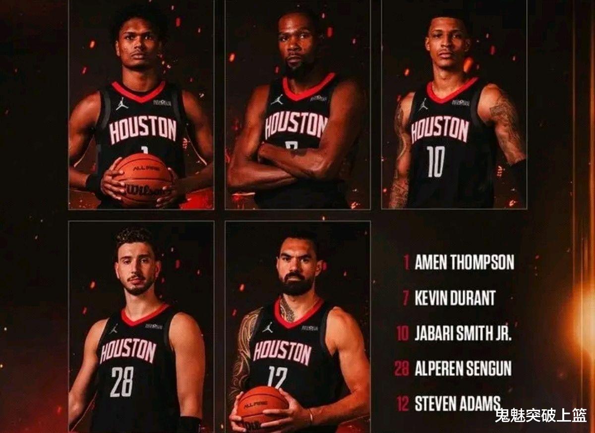 火箭首发五虎:阿门+杜兰特+小史密斯+申京+亚当斯。