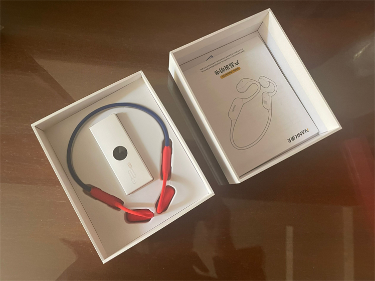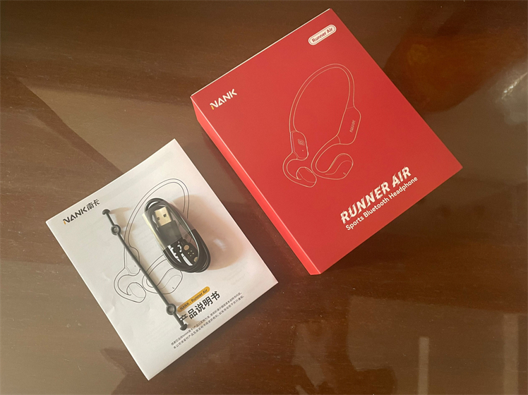 目前南卡Runner Air共有海棠红、深空灰、玄英黑以及鹿绒棕四款配色可选,本人手上的是海棠红版本。打开盒盖可以看到耳机本体镶嵌在盒中。另外,除了耳机本体,耳机的配件并不多,包括一根专用的磁吸充电线,一根松紧调节带和说明书。