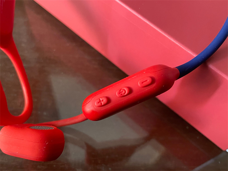 外观设计延续了Runner系列的风格,机身重量仅26g,采用6层亲肤抗菌硅胶材质,红蓝撞色设计,充满动感活力。南卡Runner Air属于气传导蓝牙耳机,也是一款开放式蓝牙耳机,采用耳挂式设计,佩戴时,柔软舒适,耳机单元贴着耳朵,不入耳,此外如果觉得颈挂区域有点松,或者是剧烈运动时担心后挂会轻微摆动不舒服,还可以通过松紧调节带来调节,起到类似头戴耳机横梁的作用,从而进一步提升耳机的佩戴牢固度与舒适度。