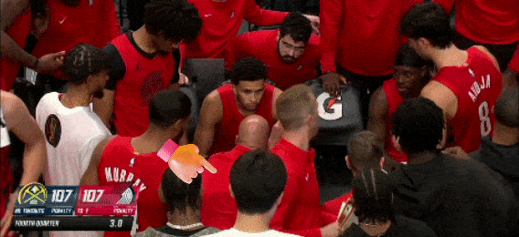 杨瀚森也在为格兰特庆祝,只是站在外圈鼓掌,没有挤进去。仔细看,乐福,塞布尔、亨德森、西索科等开拓者其他球员,同样没有在内圈。