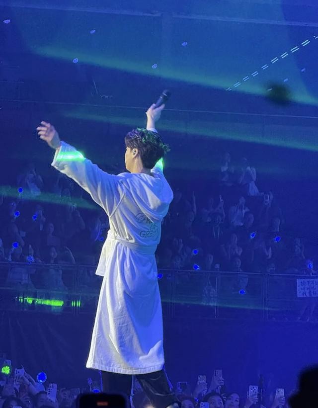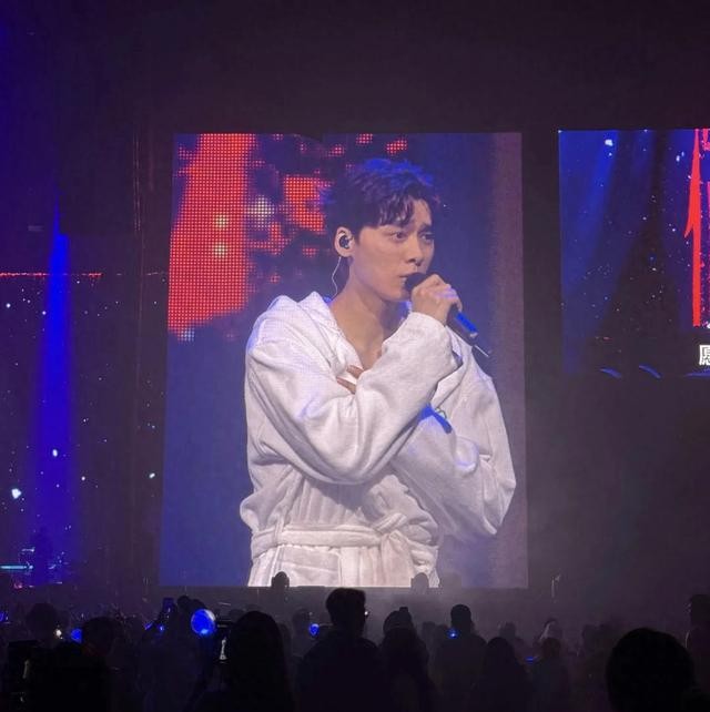 在演唱会的最后,他穿了一件白色浴袍上台,和粉丝们一起大合唱,双方约定好下一次再见面!