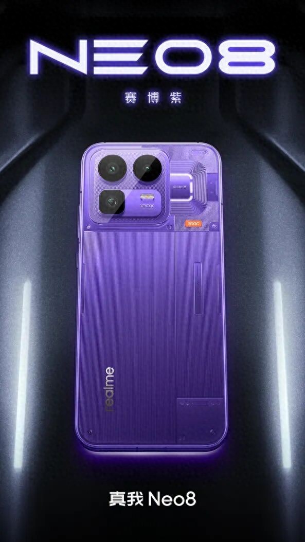 今天,真我手机官宣,真我Neo8将于本月发布,并公布了赛博紫配色的外观设计。