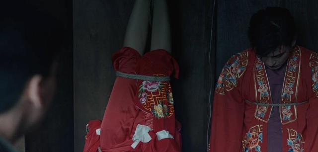 欧豪饰演的温玉亭是个戏痴,为了强迫红袖嫁给自己,他便将其绑来吊在衣橱里,想要结成一对阴间夫妻。