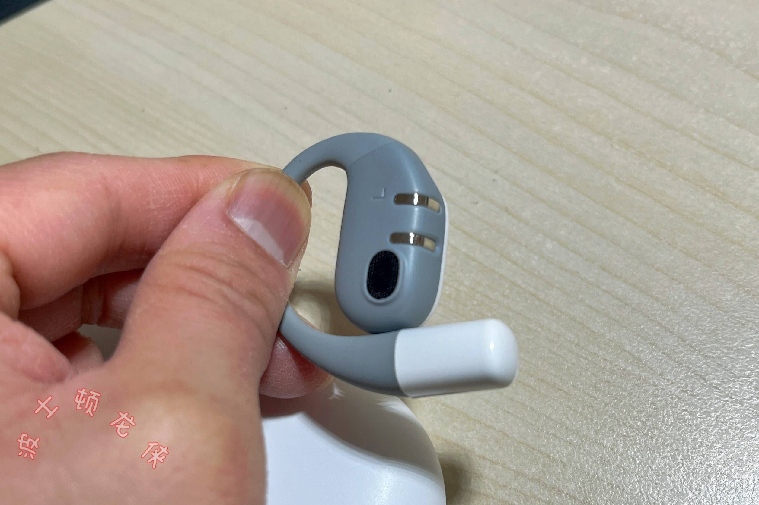 ▲虹觅Ultra的虹觅白配色采用白灰撞色设计,单耳重量约为8克。接触皮肤部分的耳挂使用液态硅胶材质,柔软舒适且致敏率低,人体工学多点支撑不勒耳不压耳不坠耳。