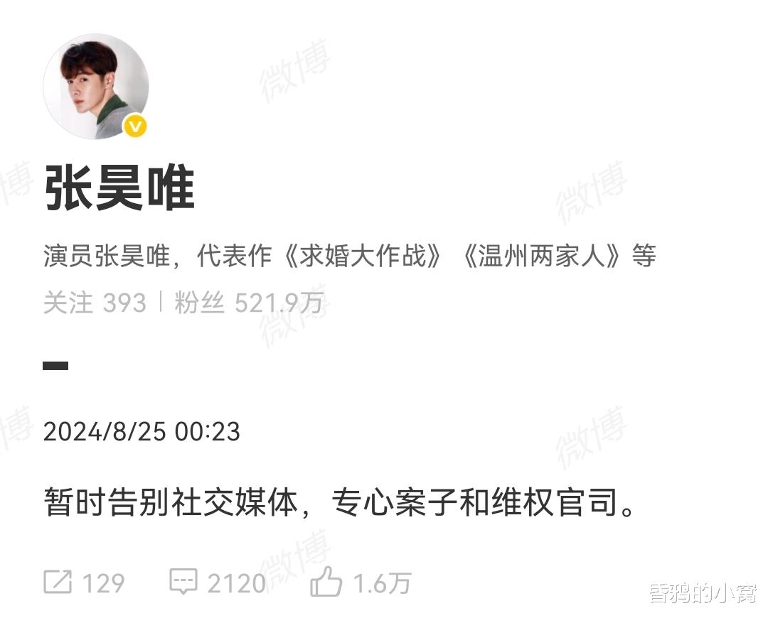 张昊唯的这场维权,不只是他个人的胜利,更是对所有坚守本心的演员的肯定 —— 只要演技扎实、行得正坐得端,就不怕流言蜚语,也终会被看见。