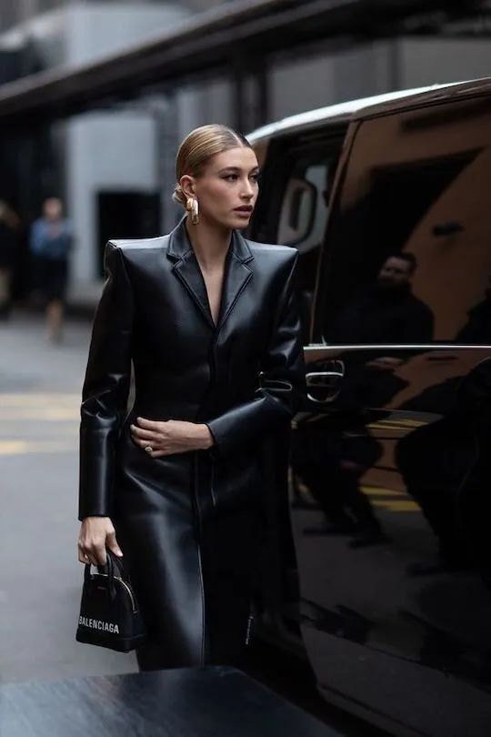 墨黑色长皮衣带来超A气场,all black更是精纯帅气浓度,仿佛带上墨镜就能立马开演《黑客帝国》!