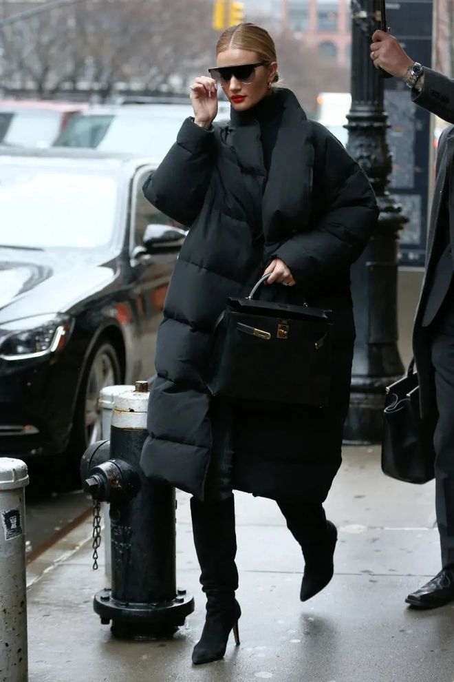 长羽绒服搭配BV靴又酷又飒,宽大的衣装版型顺至紧缩的靴型,恰如好处的展现最纤细的脚踝部位,这个小心机必须get!