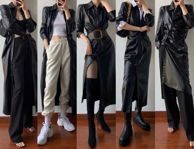 黑色长皮衣绝对是每个女生衣橱里必须拥有的单品,能穿出1=N的效果!