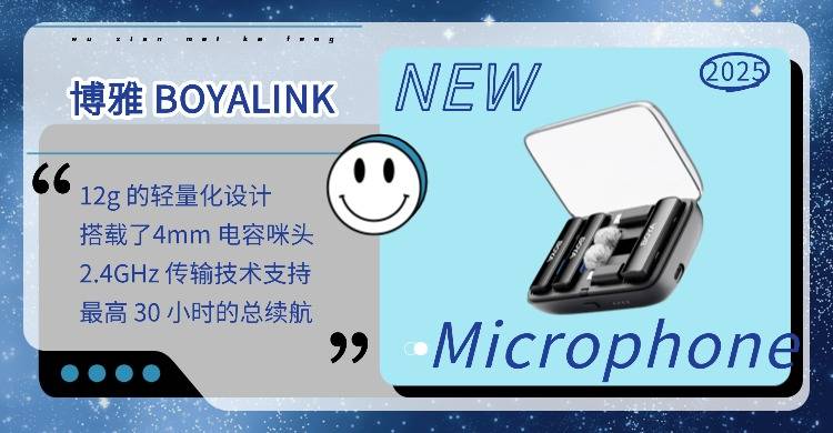 博雅 BOYALINK很适合夏天穿轻薄衣物,想要一款隐蔽性好、佩戴舒适的无线麦克风的创作者。它仅仅 12g 的轻量化设计,夹戴隐蔽方便,不会压垮轻薄衣物,佩戴体验很舒适。搭载了4mm 电容咪头+ AI 智能降噪 +一键主动降噪,能有效过滤各种杂音;2.4GHz 传输技术支持 100 米内开阔环境稳定连接,几乎没有断连情况;最高 30 小时的总续航,能满足长时间拍摄需求;配备 Type-C、Lightning 接口,即插即用,兼容性覆盖各种主流设备。