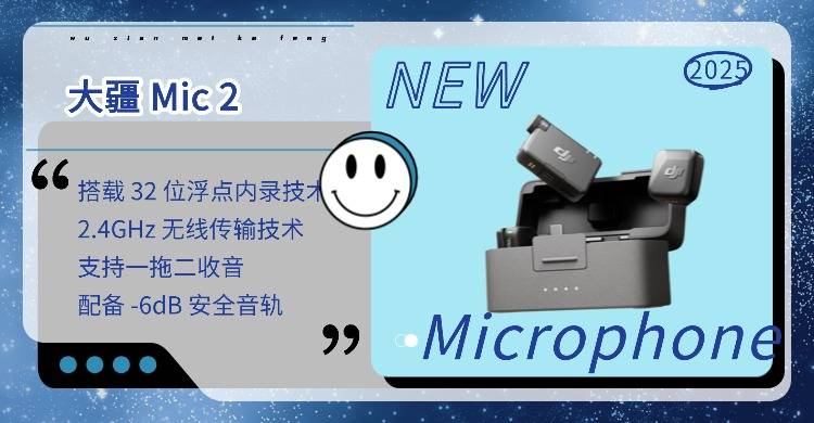 大疆 Mic 2可以说在专业性能和实用体验之间找到了完美平衡。它搭载 32 位浮点内录技术,配合双档智能降噪功能,能够还原清晰人声;同时采用 2.4GHz 无线传输技术,有在250 米无遮挡环境下稳定传输的理想效果。而且还支持一拖二收音,满足多人访谈、双人直播等场景需求,配备 -6dB 安全音轨,进一步保障素材安全,避免意外情况。