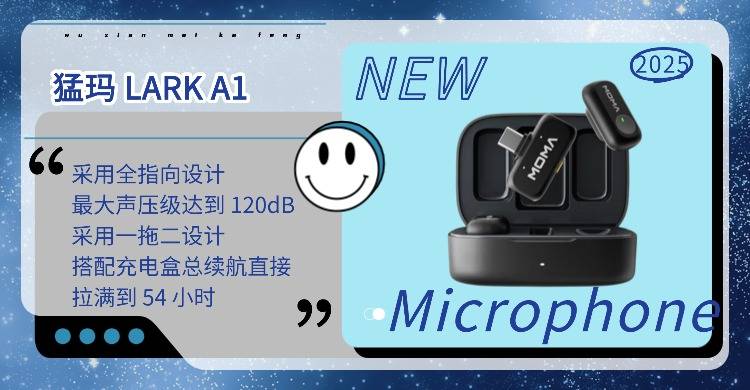 猛玛 LARK A1属于是多人拍摄与多场景创作的“性价比利器”,它的配置既扎实又实用,采用全指向设计,收音范围足够广,每个人的声音都能被清晰收录。更值得一提的是,它的最大声压级达到 120dB,在高声压环境下,也能有效避免声音过载失真,保证音质稳定输出。同时还配备三档智能降噪模式,从室内过渡到室外也不需要频繁复杂的调节。