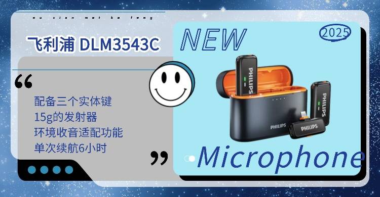 飞利浦DLM3543C这款相对于其他基础款来说更加操作简单,新手能够快速上手。它机身配备电源、配对、降噪三个实体键,按键凸起明显,盲按就能快速定位功能,完全不用对照说明书慢慢摸索,没接触过麦克风的新手也能秒上手。15g的发射器采用单指夹取背夹设计,日常携带也方便。而且它还具备环境收音适配功能,能根据近距离人声自动优化拾音强度。发射器单次续航6小时,搭配充电盒总续航达20小时,还支持3分钟无操作自动关机省电。