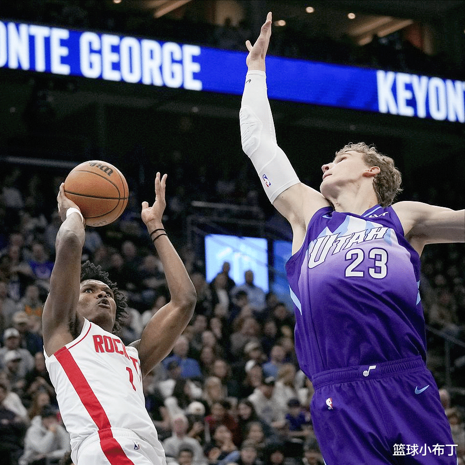 先看爵士的首发一号位:基扬特·乔治。这小子最近打疯了,刚拿过31分5篮板6助攻的全面数据,本赛季第四次得分超30分,身高1米93,体重83公斤,主打速度和投射,和马尔卡宁的挡拆是爵士的杀招。从对位来说,谢泼德完全能防他——两人身高体型接近,谢泼德的横移速度不吃亏,火箭只要用“挤掩护”策略,不让乔治轻易绕挡拆接球,就算偶尔被他突进去,谢泼德也能跟上干扰。