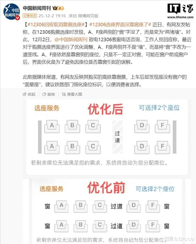 界面调整引发网友热烈讨论。有网友调侃道:“从‘靠窗’到‘两堵墙’,这优化方向真是意想不到。”也有网友表示理解:“至少现在更诚实了,总比满怀期待上车后失望好。”