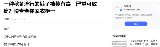 《一种秋冬流行的裤子被传有毒,严重可致癌?快查查你家衣柜→》