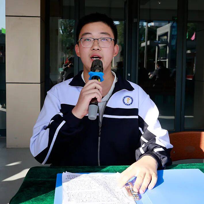 会议由高二学生史靖琳和郝栋煊主持。奏唱国歌后,年级主任郗磊宣读了关于表彰“范亭中学高二年级10 月份联考 ‘学习标兵'‘奋进标兵'‘优秀班干部’和‘先进班集体’”的决定。