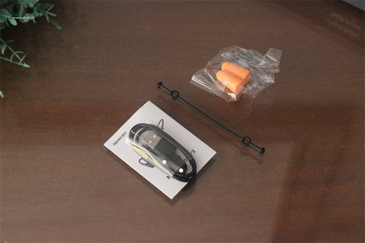 南卡Runner3外包装比较简约环保,有深灰色和卡其色两款可选,本人收到的是深灰色,打开盒盖可以看到耳机本体镶嵌在盒中。另外,除了耳机本体,耳机的配件并不多,包括一根专用的磁吸充电线,一对耳塞,说明书和一根麦克风保护塞。