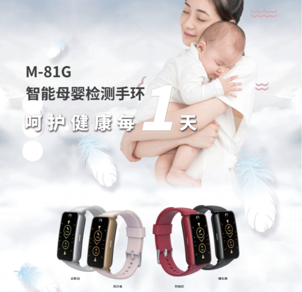 M-81G手环能够实时监测母婴的心率,帮助用户了解自己和宝宝的身体状况,还可以记录和分析母婴的睡眠数据,提供改善睡眠质量的建议,帮助母婴获得更好的休息。