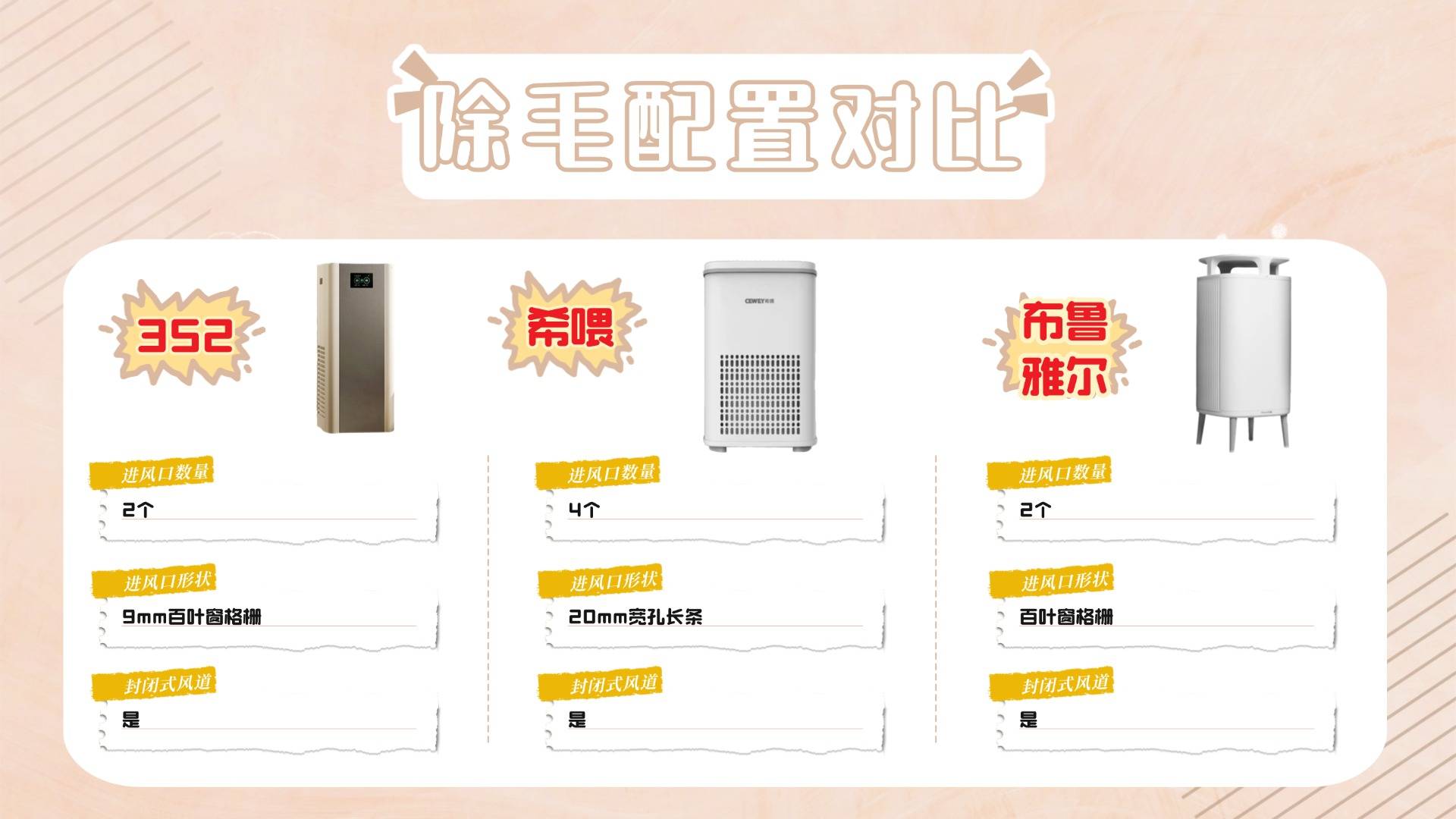 相比之下,352和布鲁雅尔的初效滤网对浮毛吸附效果较好,但缺少异味分解层,导致异味净化效果不持久。