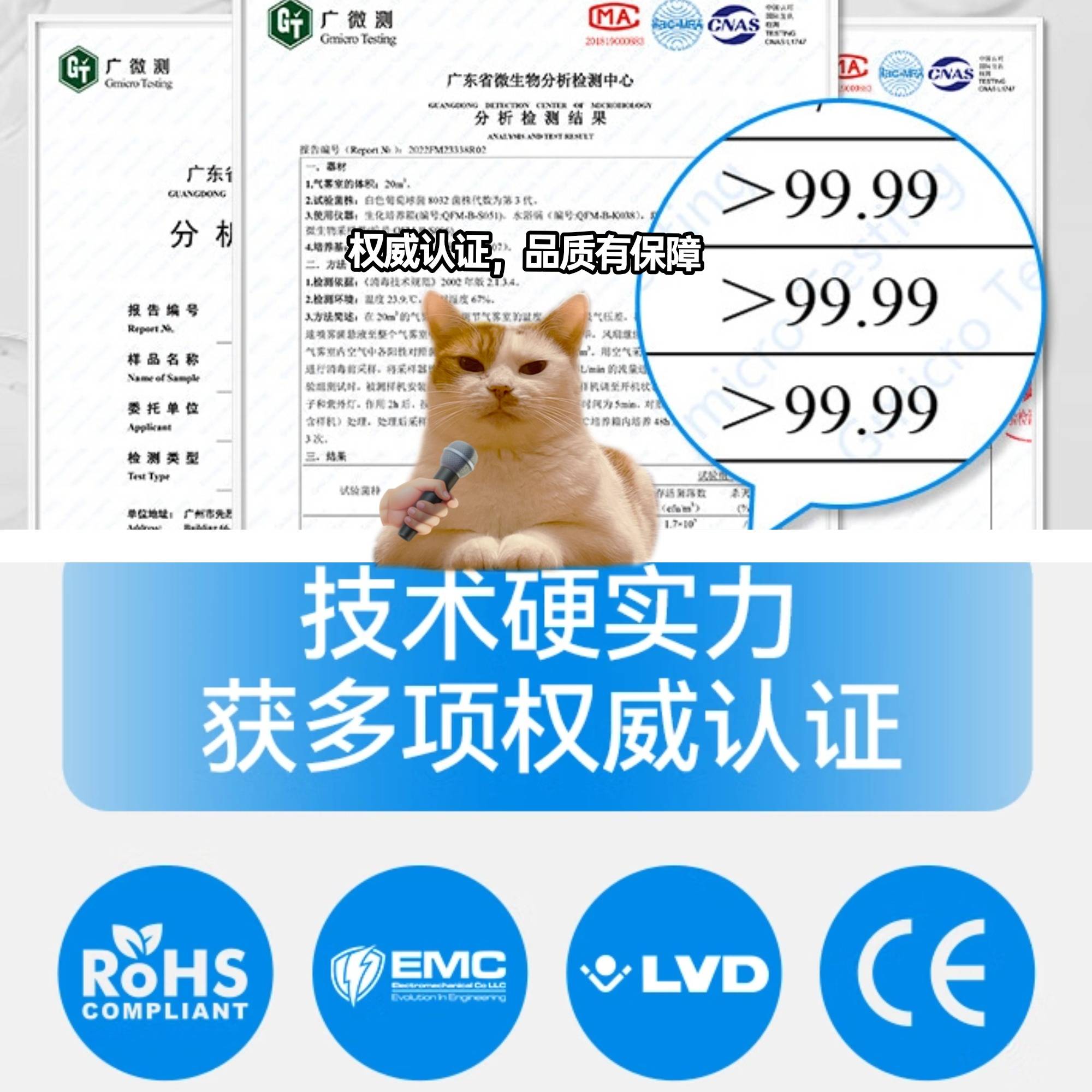 测试原理:宠物家庭的空气质量容易受到病菌和病毒的影响,尤其是宠物从室外活动后带回的有害微生物。空气净化器通过UV紫外线技术,能够迅速有效地杀灭这些细菌和病毒,为家庭提供更健康的呼吸环境。
