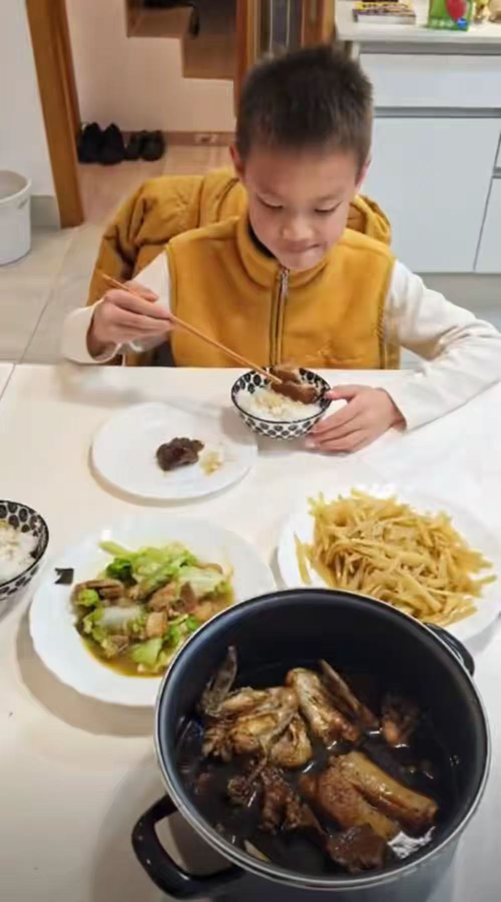 但他们却还是中国胃,家里做的菜也是很普通,比如晚餐一个素土豆、白菜炒肉和一个鸡翅排骨乱炖。