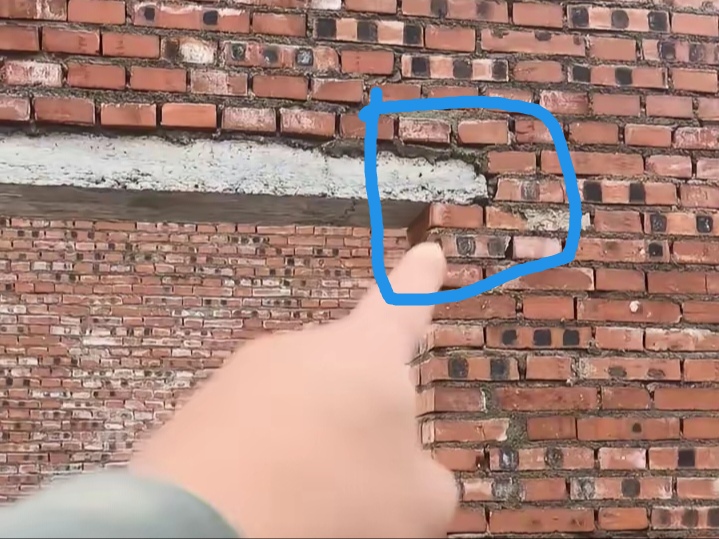 自建房一定要在现场亲自监督,要不然真不知道包工头搞出什么幺蛾子事来。看看图片中这个房子的门洞过梁,先不说砖墙砌的怎么样,混凝土过梁伸入墙体也太少了吧,只有一块红砖的距离,估计才12厘米。真害怕哪天就垮了下来。