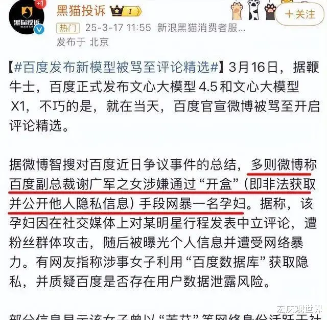 就在大家以为这就是一场普通的饭圈闹剧时,百度副总裁谢广军的十三岁女儿也掺和进来了。她用“眼眸”等ID活跃在微博上,而且疑似有多个账号。这小姑娘从去年就开始在饭圈干“开盒”素人的事儿了,这次虽然没直接对孕妇下手,但却把黑手伸向了帮孕妇说话的路人,把路人的隐私信息全给泄露了。这事儿一曝光,网友们瞬间就炸了,纷纷质疑她是不是利用了“百度数据库”来获取网友们的隐私信息。毕竟,她老爸是百度副总裁,她接触敏感数据的机会肯定比普通人多得多。