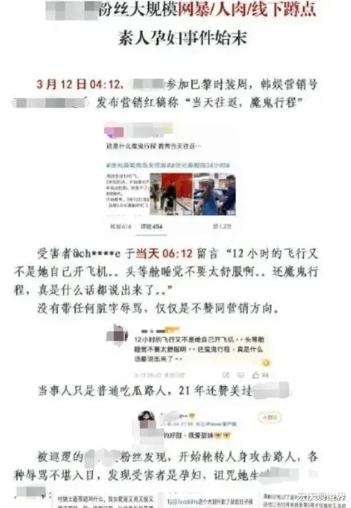 事情是这样的,一位孕妇在社交媒体上,就韩国艺人张元英的行程随便说了一句自己的看法,说“她不过乘坐了12个小时的头等舱,称不上极为辛苦”,这话本身没啥问题,就是个人想法嘛。可这话一出,张元英的粉丝瞬间就不干了,情绪直接失控,不管孕妇说的有没有道理,直接开喷,还把孕妇的真实姓名、身份证号码、手机号码、工作单位,甚至她丈夫的联系方式都给扒了出来,然后就是各种辱骂和造谣,这操作,简直太没底线了!