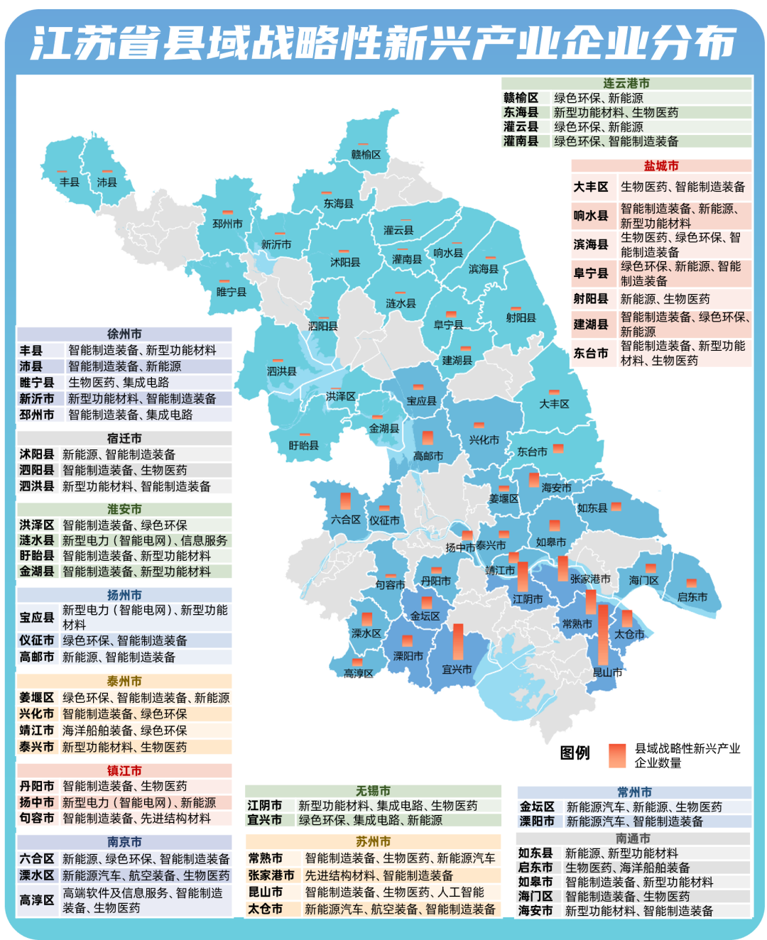 江苏省县域战略性新兴产业企业分布 图片来源:安徽创研院