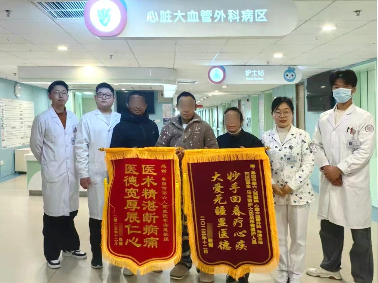 2025年12月13日,患者王先生康复出院,他和家人为心脏大血管外科医护人员送来锦旗表示感谢。